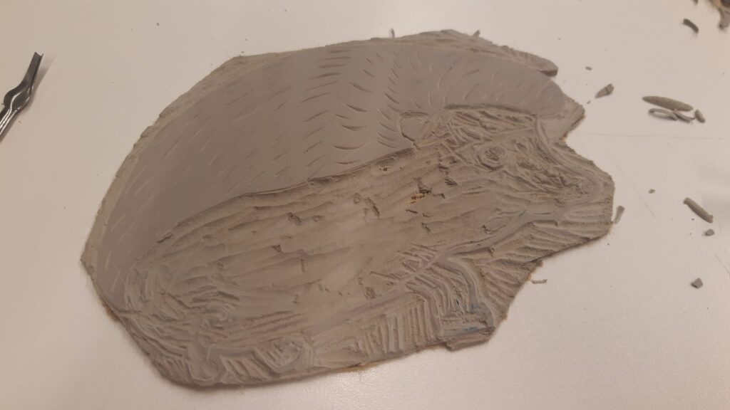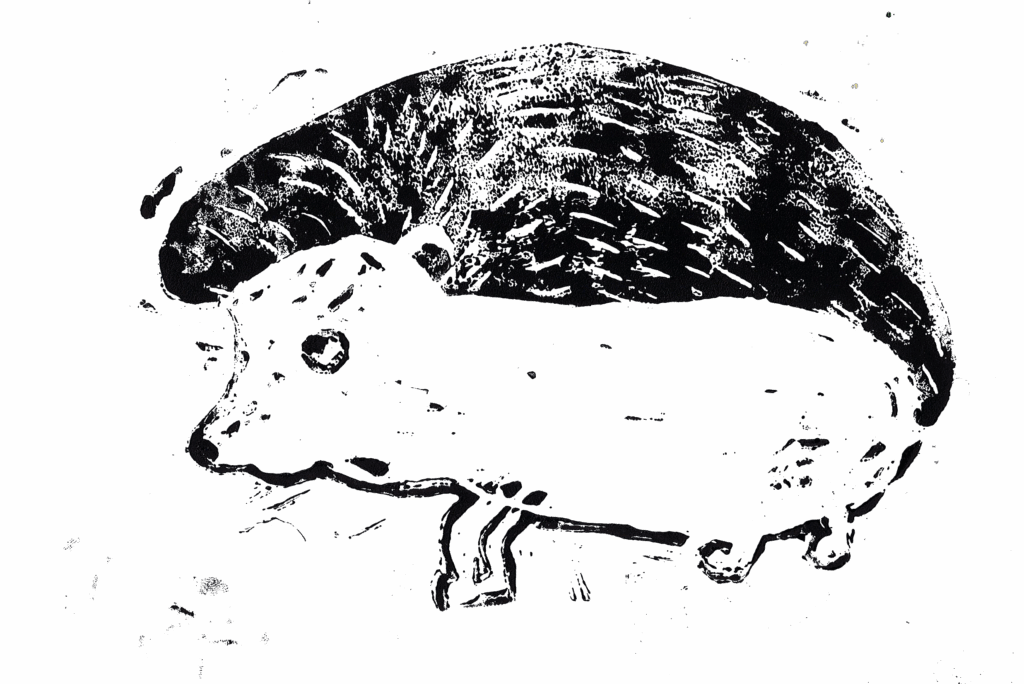 Voordat ik kon beginnen met het maken van de poster heb ik eerst een egel uit een stuk linolem